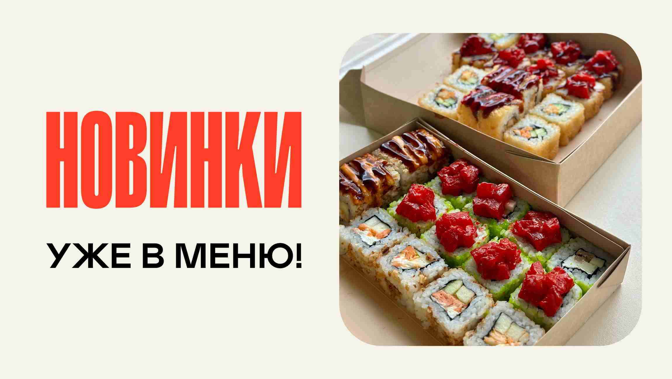Рис, Водоросли, Сыр творожный, Лосось, салат "Айсберг", Икра масаго, сыр для запекания, соус "Спайси", Лук "Криспи"